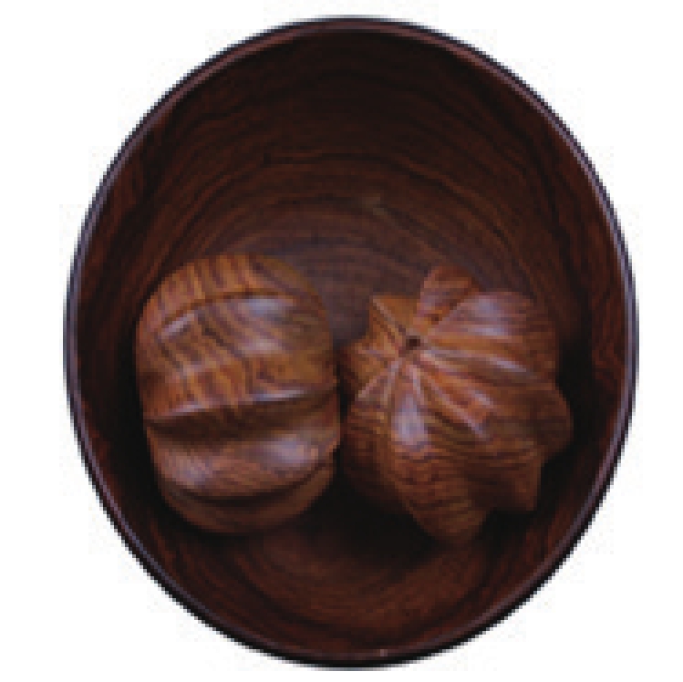 “香枝木”也指我国特有的降香黄檀树种之木材,最早出现在广州木业界,又有“土酸枝”之名。广东家具行业中通常称其为“降香木”(药用名为“降香”)。所以,从木材树种来看,“香枝木”“土酸枝”“降香木”“黄花梨”所指均为同一树种,即“降香黄檀”。但“黄花梨”在商业领域有乱用之势,有人把“花梨木”“酸枝木”中的其他种属也混称为“黄花梨”,或者直接用“黄花梨”作为所有“花梨木”的代称。后来,国家《红木》标准的编制者在国家标准中采用“香枝木”而不用“黄花梨”这一名称,专指“降香黄檀”,主要是希望结束“黄花梨”家具用材树种名称之混乱现象,促进红木家具行业的健康发展。2017年新版《红木》国家标准中仍无“黄花梨”这个名称,该标准中设置有“花梨木类”和“香枝木类”两个类别,“花梨木类”并不包含“降香黄檀”,而“香枝木类”专指“降香黄檀”。越南香枝木碗如图1-23所示。