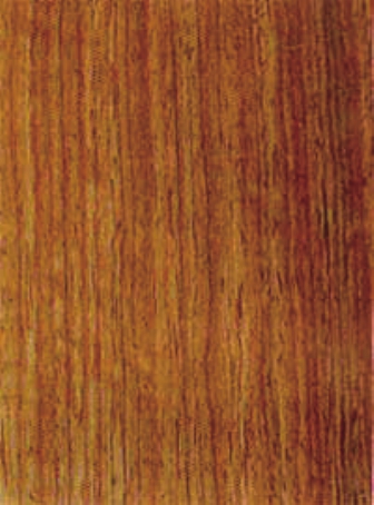 (1)带状条纹。花梨木纹较粗,纹理直且较多,心材呈大红色、黄褐色和红褐色,从纵切面上看带状长纹明显。