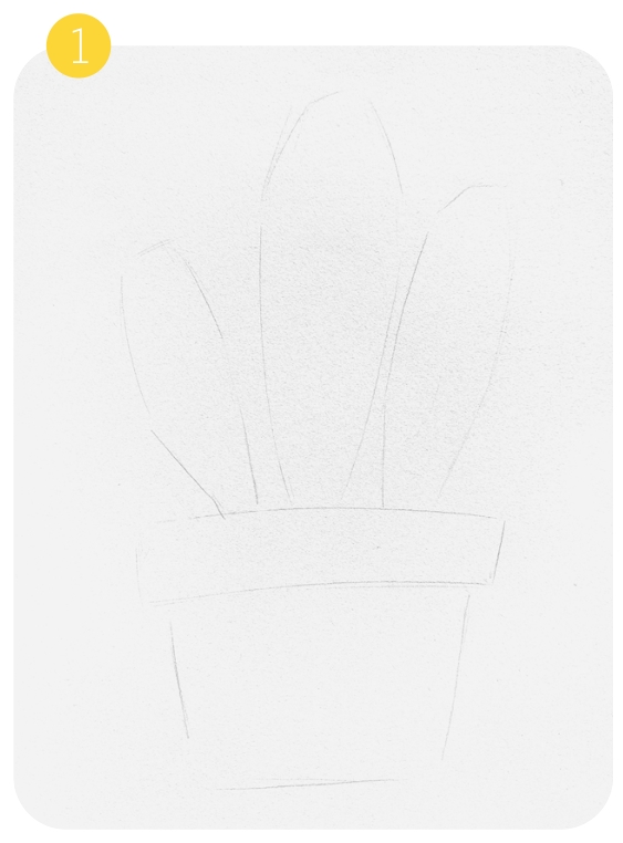 先用铅笔勾画出仙人掌的框架辅助线,画出草图。