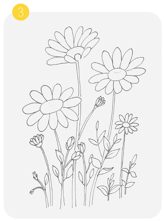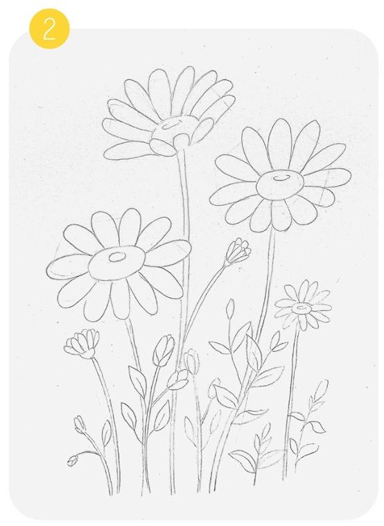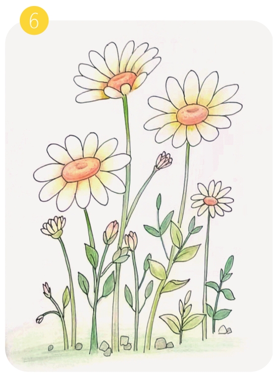 将小菊花的框架画出来,刻画小菊花的细节,再擦掉多余辅助线。