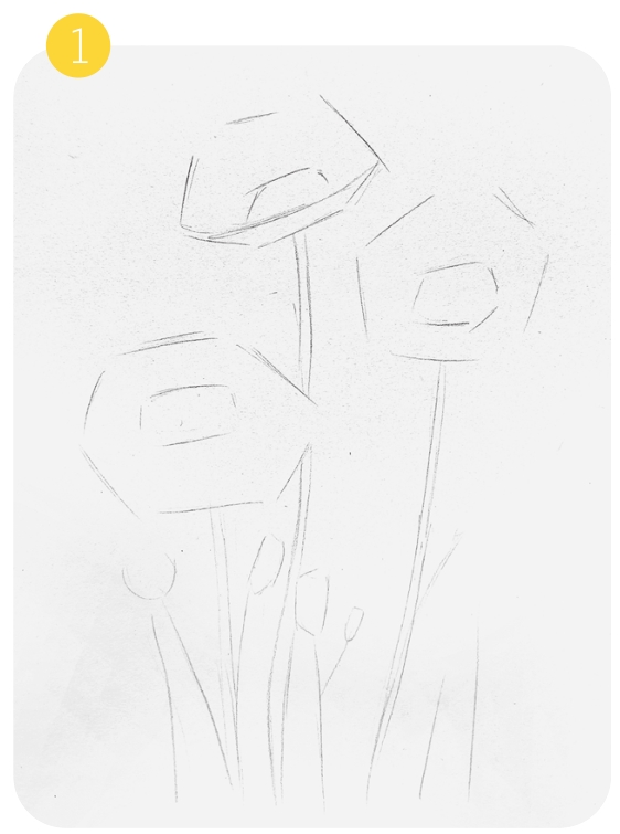 先用铅笔勾画出小菊花的框架辅助线,画出草图。