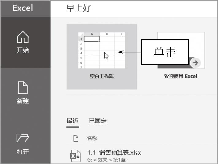 STEP 01 打开Excel软件,在“开始”界面中,单击“空白工作簿”缩略图,如图1-30所示。