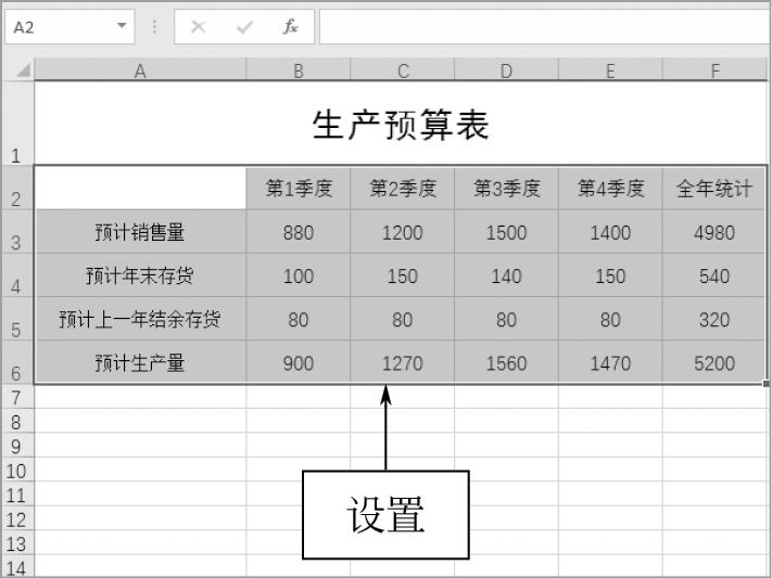1.2.3 设置生产预算表的格式