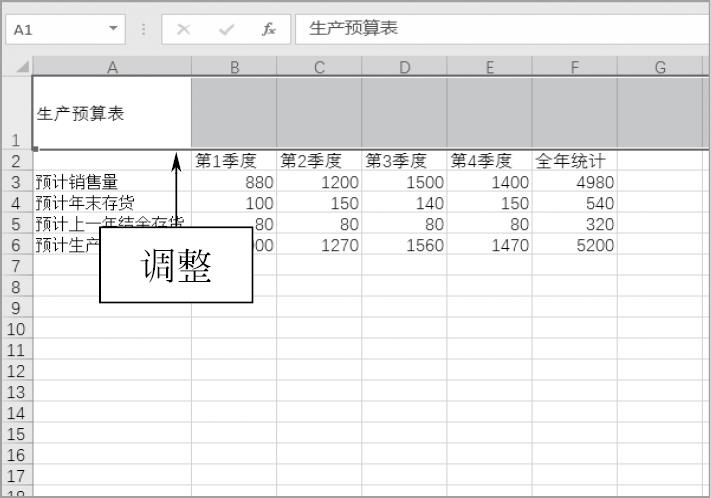 图1-42 调整第1行的行高