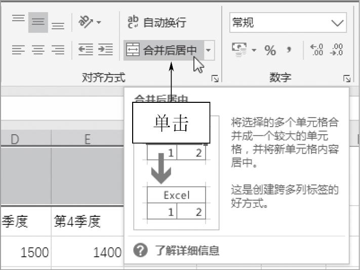 图1-50 单击“合并后居中”按钮