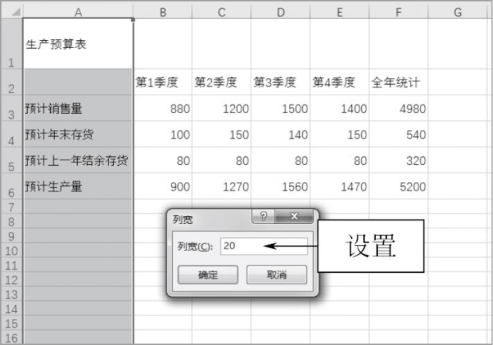 STEP 08 弹出“列宽”对话框,设置“列宽”参数为20,如图1-46所示。