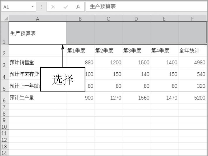 图1-49 选择A1:F1单元格区域