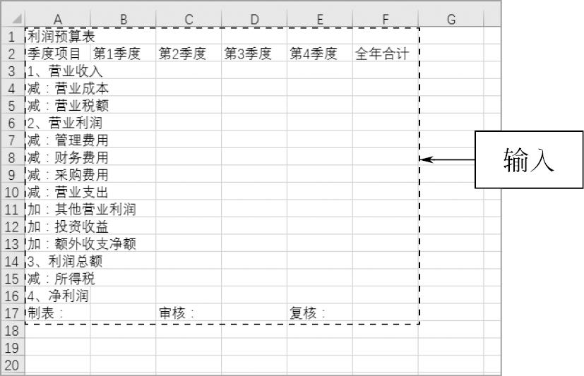 在Excel中,新建一个空白工作簿,将工作表的名字更改为“利润预算表”,然后在工作表中输入相应的内容。下面介绍具体的操作方法。
