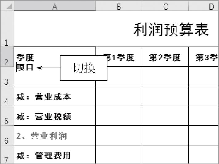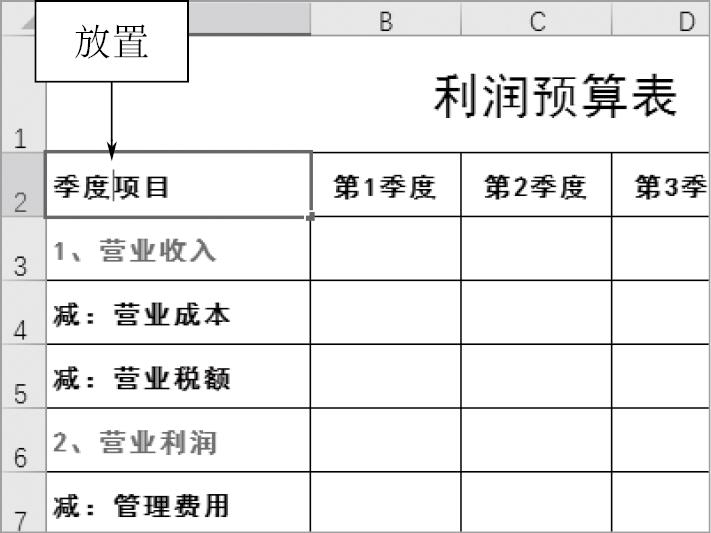 STEP 21 执行操作后,在“季度”的前面,多次按下空格键,将“季度”向右移,效果如图1-85所示。