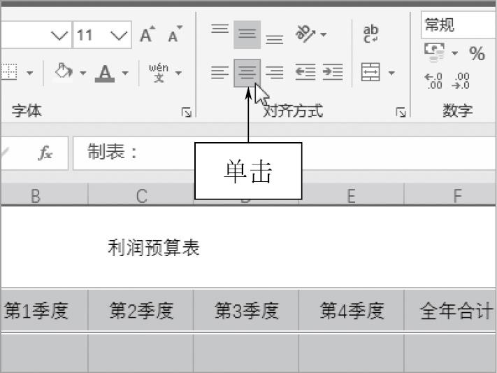 在“开始”功能区的“对齐方式”面板中,单击“居中”按钮