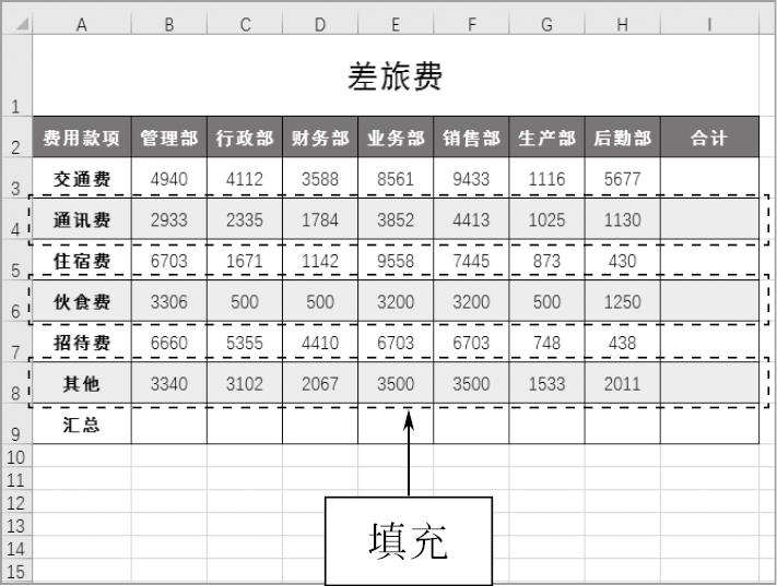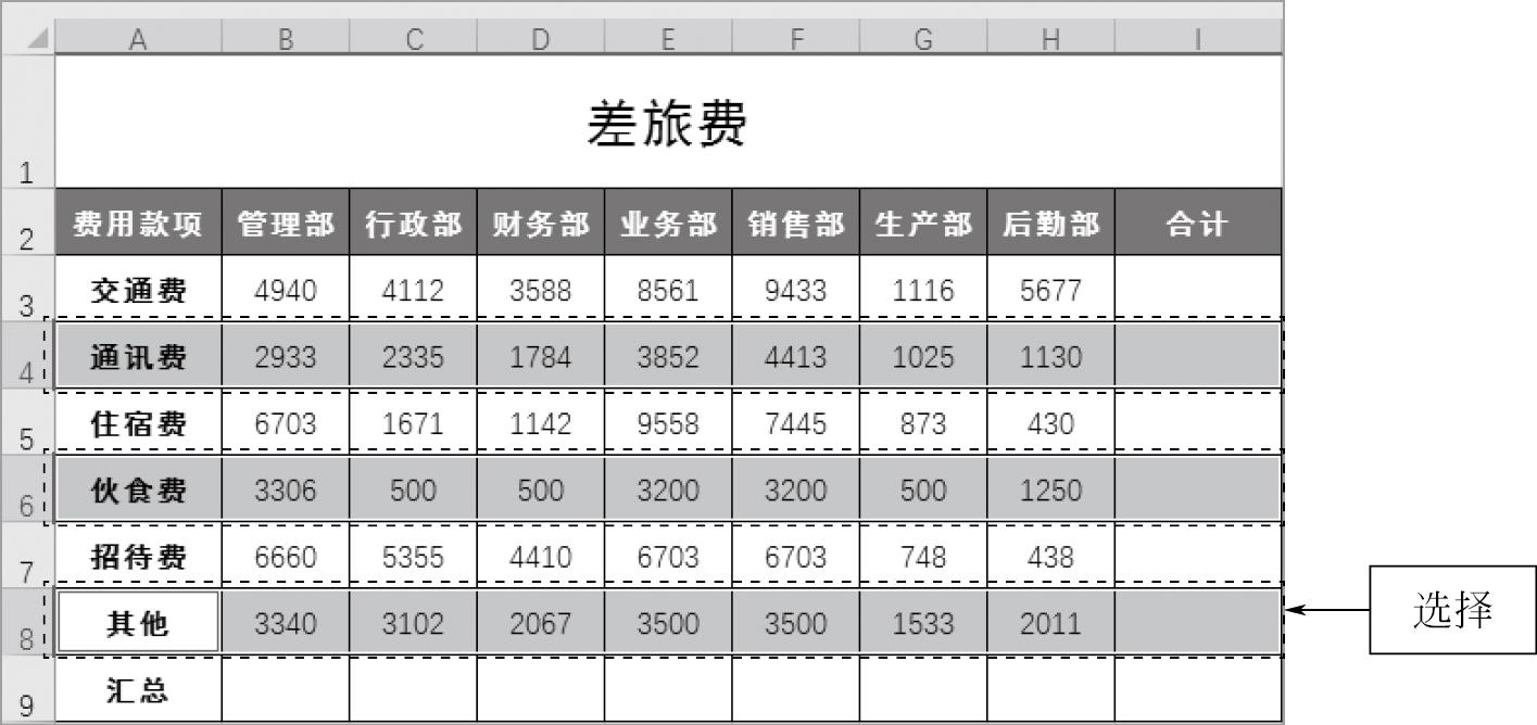 STEP 08 按住【Ctrl】键的同时,选择A4:I4单元格区域、A6:I6单元格区域以及A8:I8单元格区域,如图2-9所示。