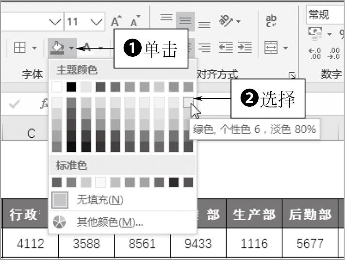 图2-10 选择“绿色,个性色6,淡色80%”色块
