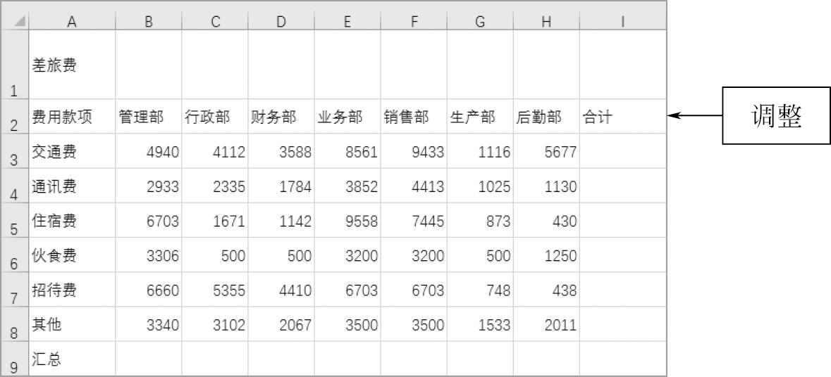 STEP 03 执行上述操作后,调整工作表的行高与列宽,效果如图2-4所示。