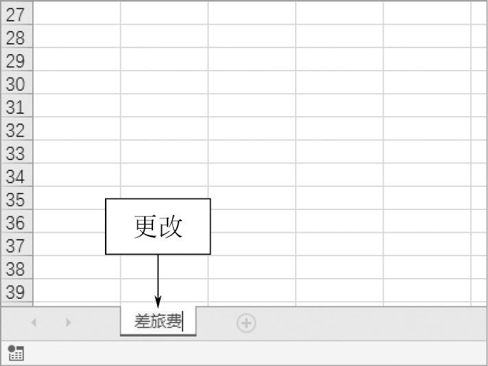 STEP 01 在Excel中,新建一个空白工作簿,在底部工作表的名称上双击鼠标左键,选择工作表的名称,将工作表的名称改为“差旅费”,如图2-2所示。