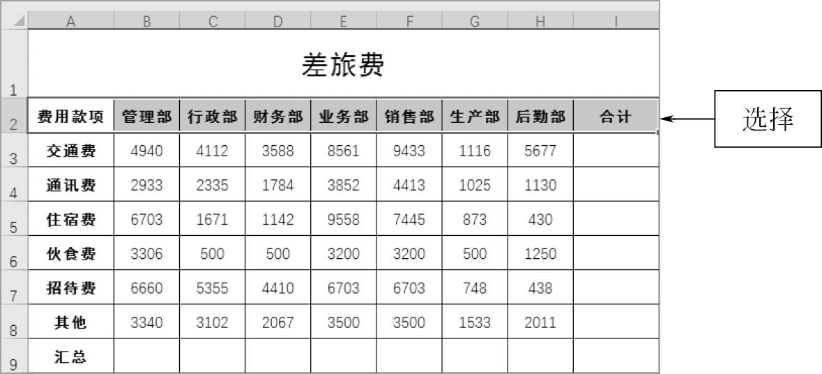 STEP 08 按住【Ctrl】键的同时,选择A4:I4单元格区域、A6:I6单元格区域以及A8:I8单元格区域,如图2-9所示。