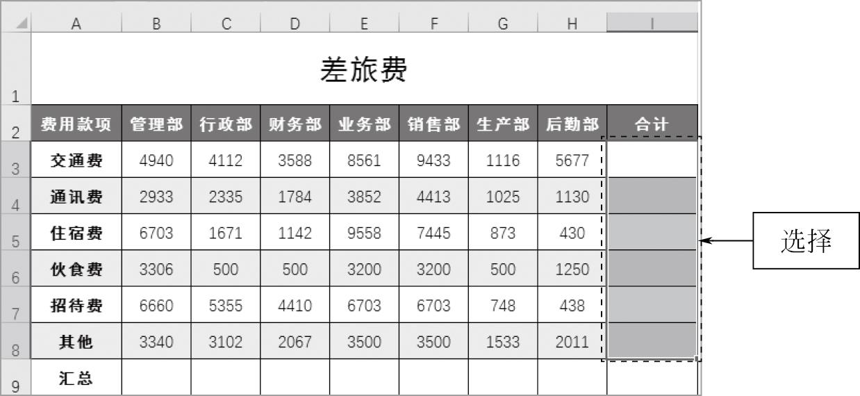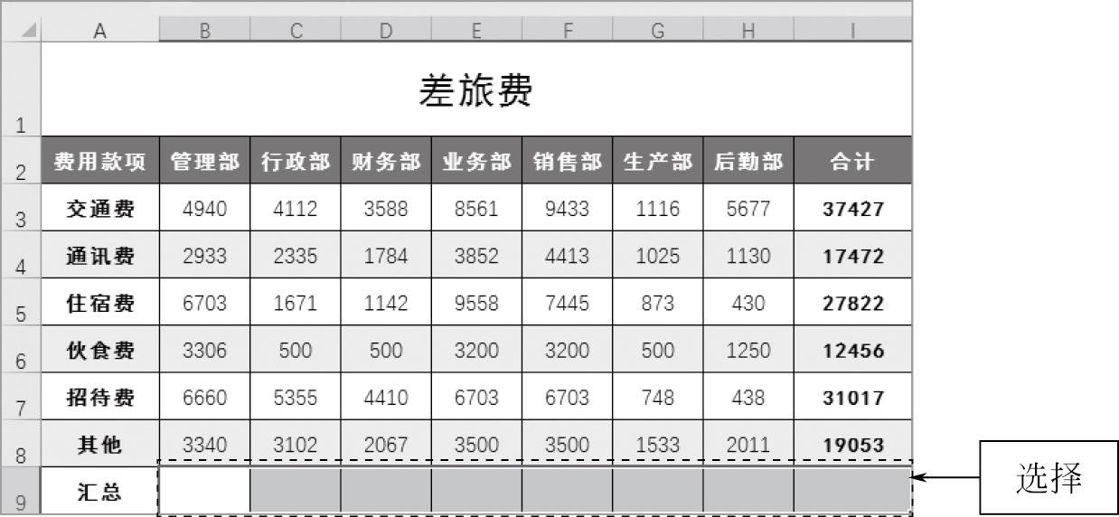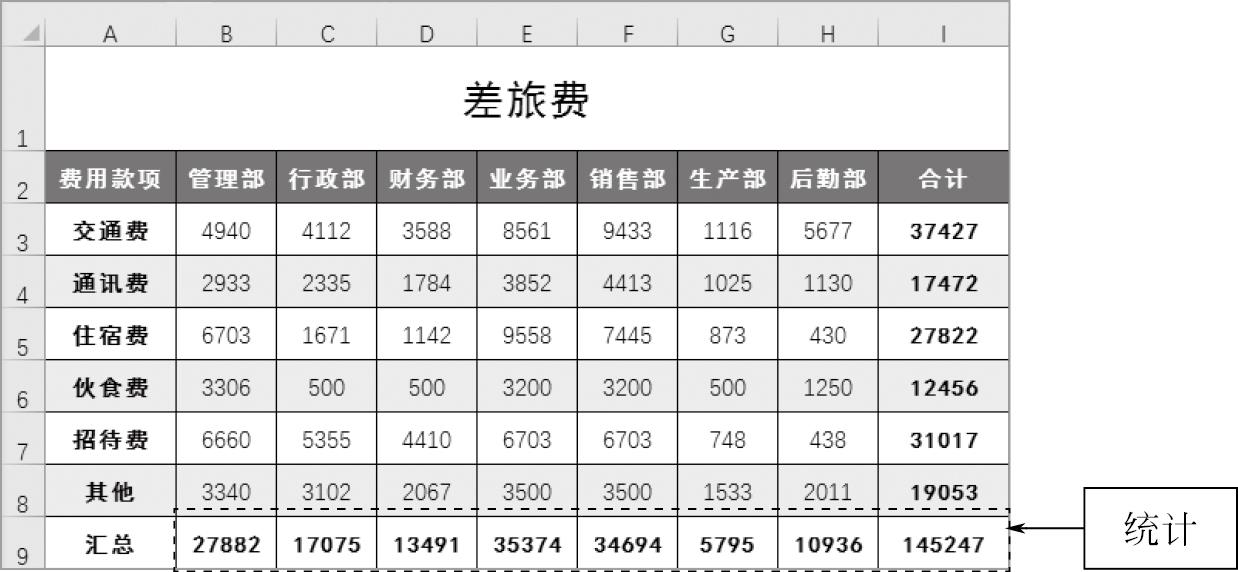 差旅费表单创建完成后,需要对各个款项的费用和各个部门的费用进行汇总统计。下面介绍具体的操作方法。