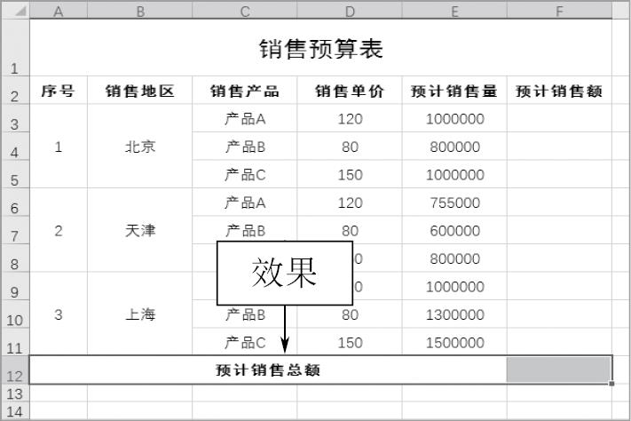 STEP 16 设置完成后,单击“确定”按钮,返回Excel工作簿,查看制作完成的“销售预算表”,效果如图1-21所示。