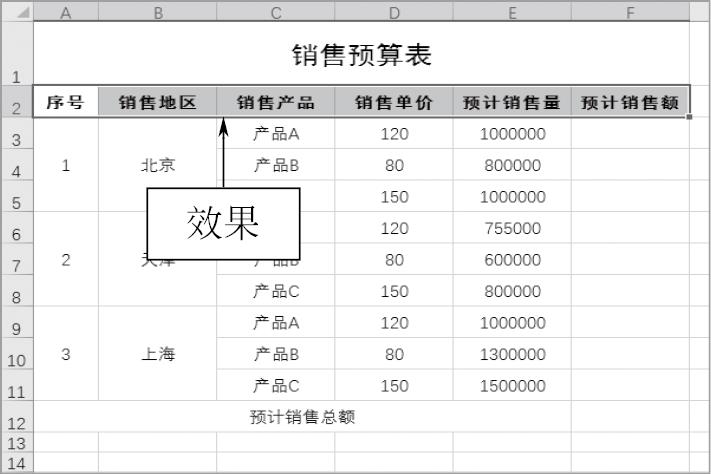 在创建的工作表中输入销售预算表单内容后,即可对工作表进行美化处理,包括调整工作表的行高、列宽,设置字体、字号、对齐方式以及添加边框线等。下面介绍美化销售预算表单内容的操作方法。