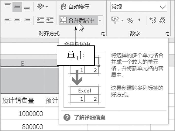STEP 05 在“开始”功能区的“对齐方式”面板中,单击“合并后居中”按钮,如图1-10所示。