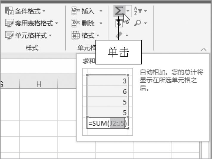 切换至“开始”功能区的“编辑”面板中,单击“求和”按钮