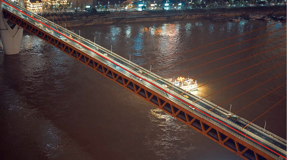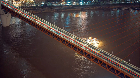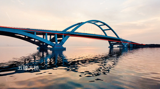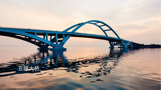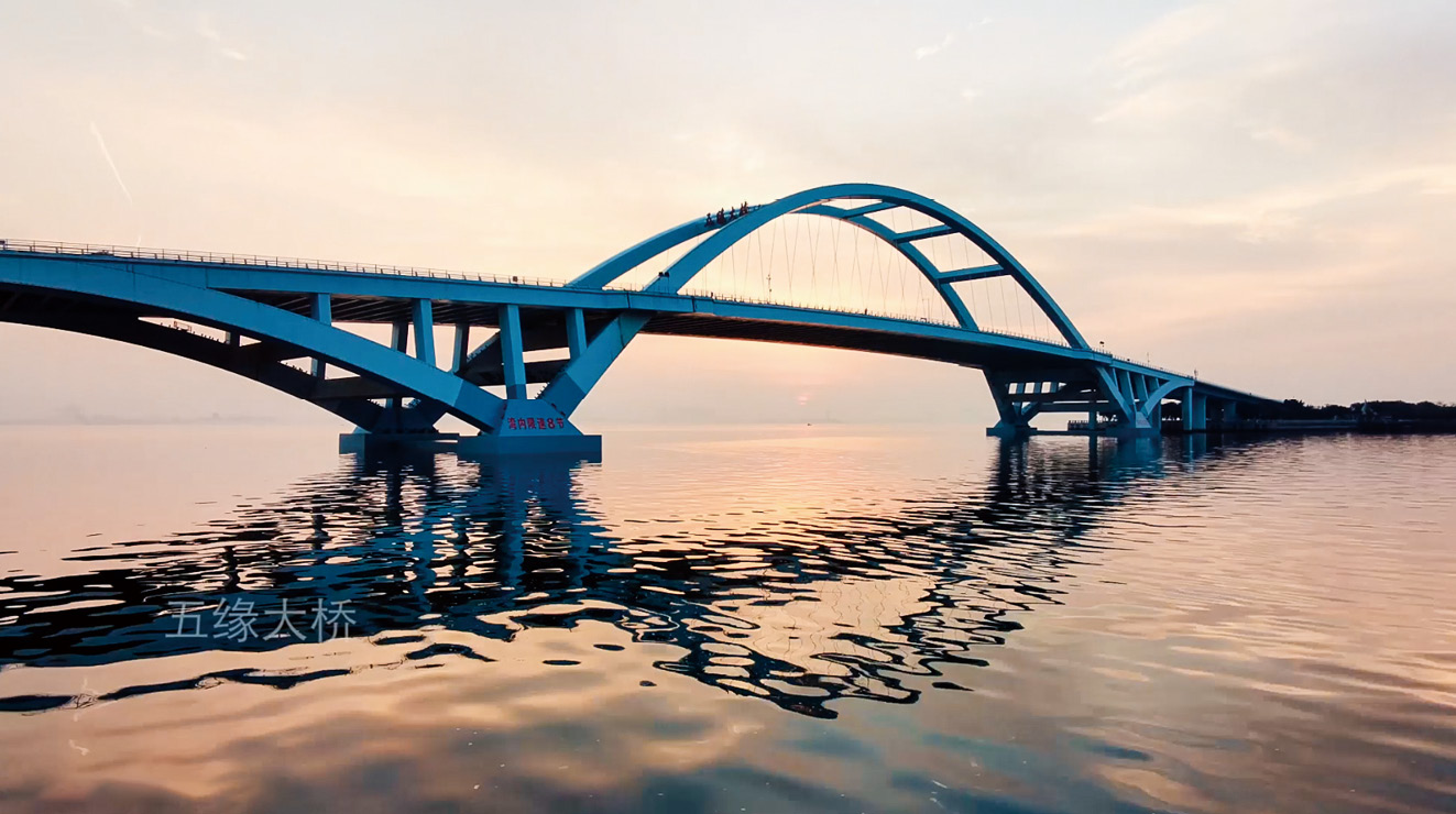 (5)斜线构图:主要利用画面中的斜线来引导观众的目光,同时能够展现物体的运动、变化及透视规律,可以让视频画面更有活力和节奏感。图2-35所示为利用大桥的斜线来进行构图,分割水面与天空,让视频画面更具层次感。