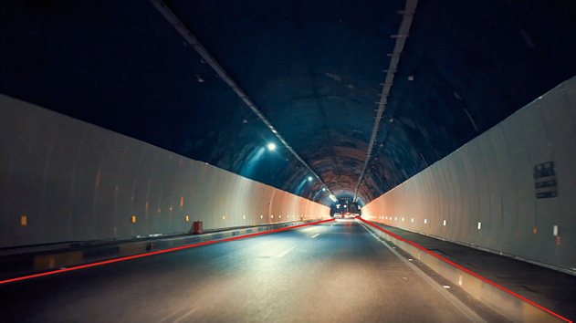 (4)透视线构图: 是指视频画面中的某一条线或某几条线,有“近大远小”的透视规律,可以使观众的视线沿着视频画面中的线条汇聚成一点。 图2-34所示为采用透视线构图拍摄的隧道短视频,画面两边都带有由远及近形成延伸感的线条,能很好地汇聚观众的视线,使视频画面更具有动感和深远意味。