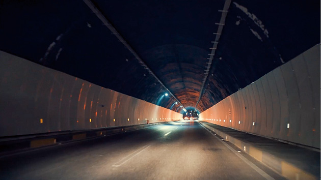 (4)透视线构图: 是指视频画面中的某一条线或某几条线,有“近大远小”的透视规律,可以使观众的视线沿着视频画面中的线条汇聚成一点。 图2-34所示为采用透视线构图拍摄的隧道短视频,画面两边都带有由远及近形成延伸感的线条,能很好地汇聚观众的视线,使视频画面更具有动感和深远意味。