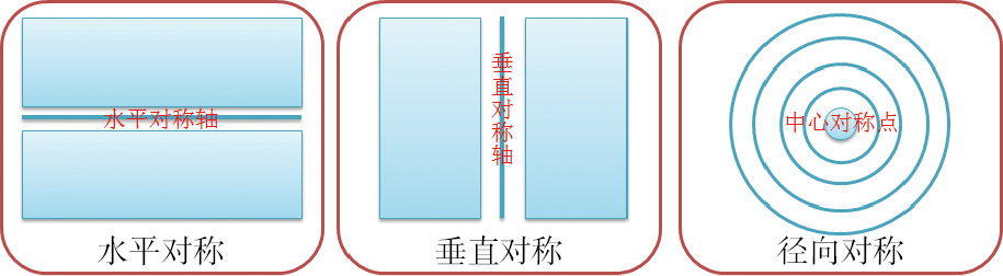 生活中有很多以不同形式存在的对称画面,下面笔者总结了一些在短视频中常用的对称构图类型,如图2-36所示。
