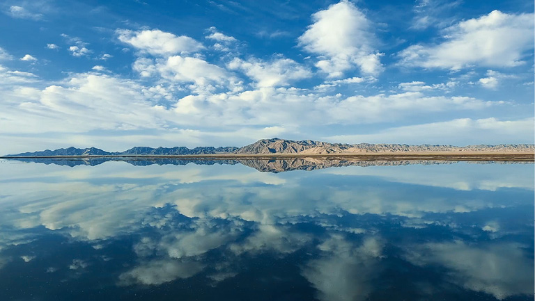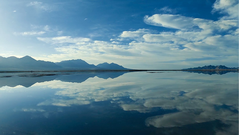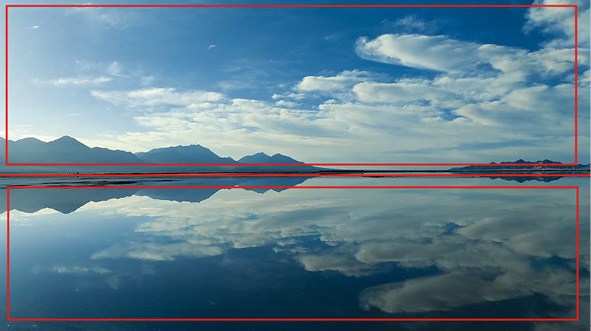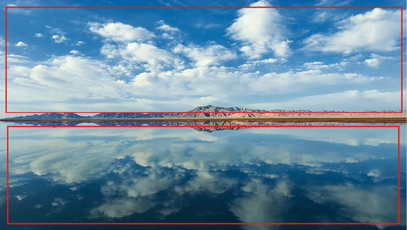 如图2-37所示,以地面与水面的交界线为水平对称轴,水面清晰地反射了上方的景物,形成水平对称构图,让视频画面的布局更为平衡。
