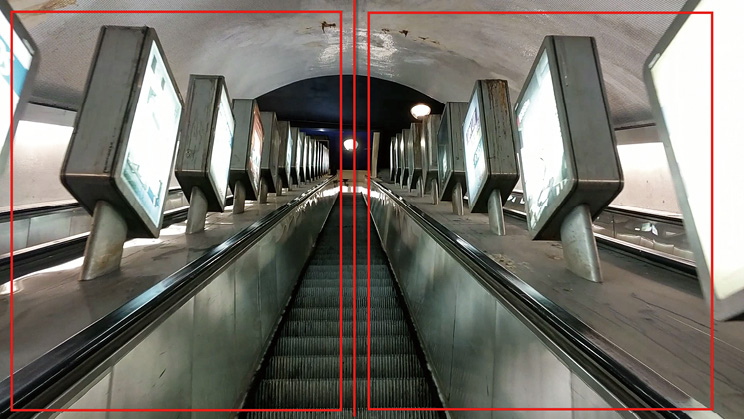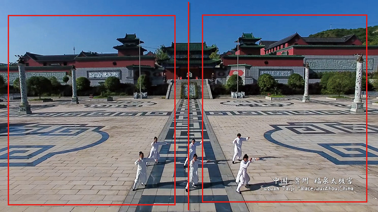 图2-38所示,下面这两个视频片段均采用垂直对称构图的形式,画面左右两侧的建筑等元素对称排列。拍摄这种视频画面时注意要横平竖直,尽量不要倾斜。