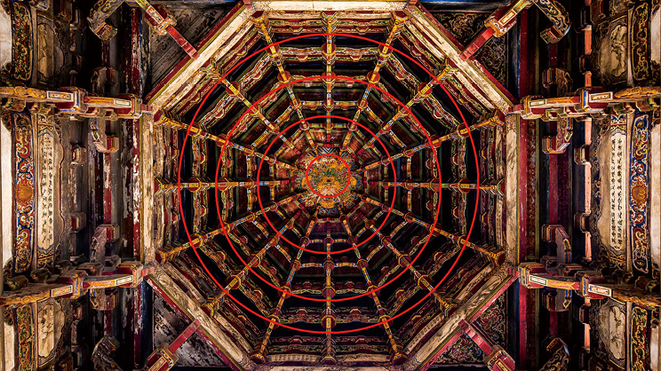 图2-39所示为采用径向对称构图拍摄的建筑短视频,将圆心作为画面的中心,圆心上的每一条直径都是一条对称轴,打造出绝对的视觉盛宴。