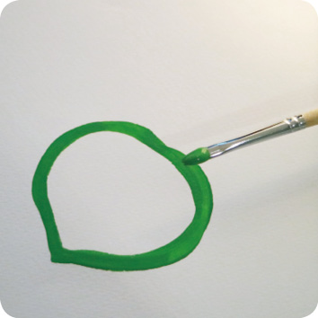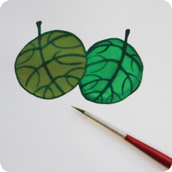 选小号水粉画笔和淡绿色,运用勾线法勾画叶子外轮廓。