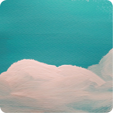 中小号水粉画笔,用白色水粉颜料画云朵,这样天空就算基本完成了。