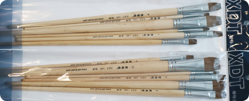 这里选用的是榭得堂狼毫平头水粉画笔,木质笔杆,笔杆偏长,容易控制,单号和双号都有准备。