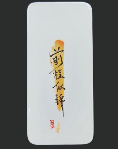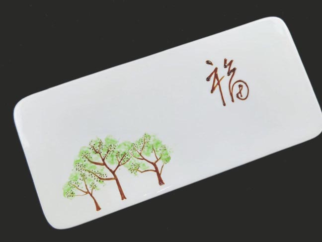 在盘子的中央位置进行定位,描画图案点缀(图15、图16)。