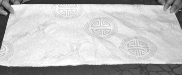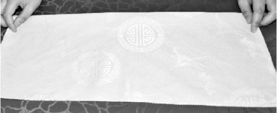 ③将另一层餐巾向对边折叠,形成宽约为8cm的小长方形。