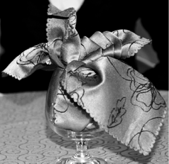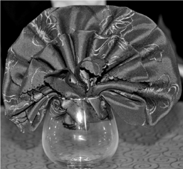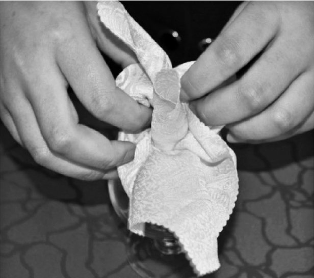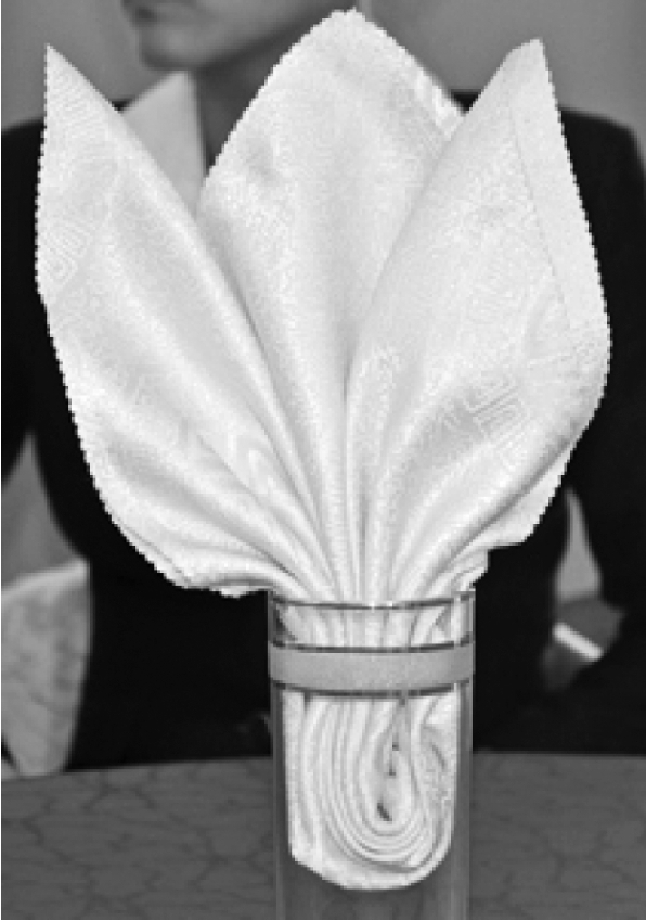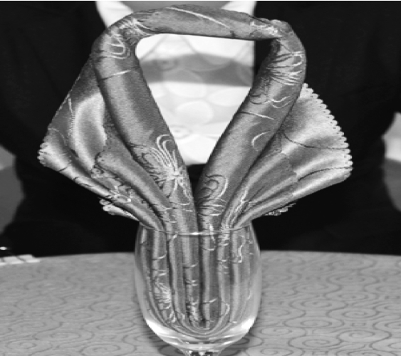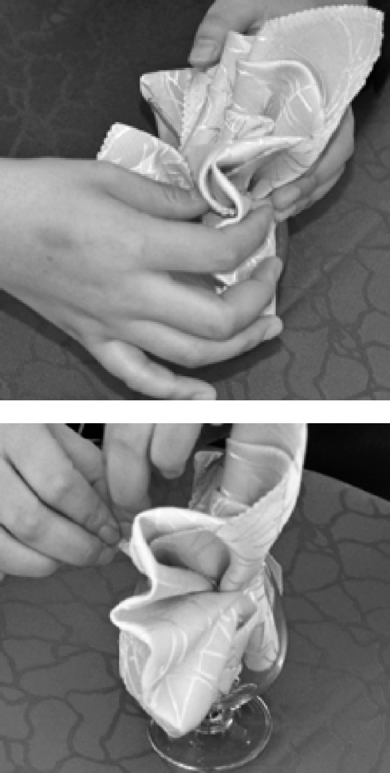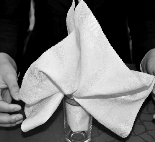 ④将餐巾放入杯中,整理成型。