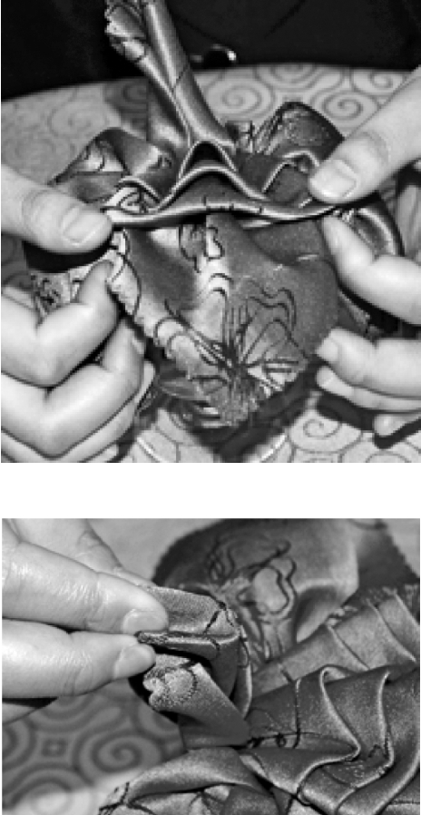 ③将剩下的小三角形捏褶。