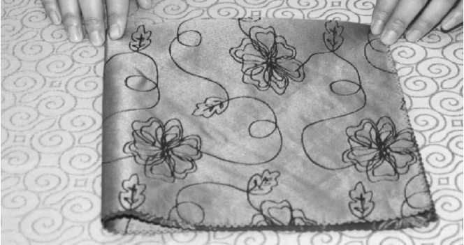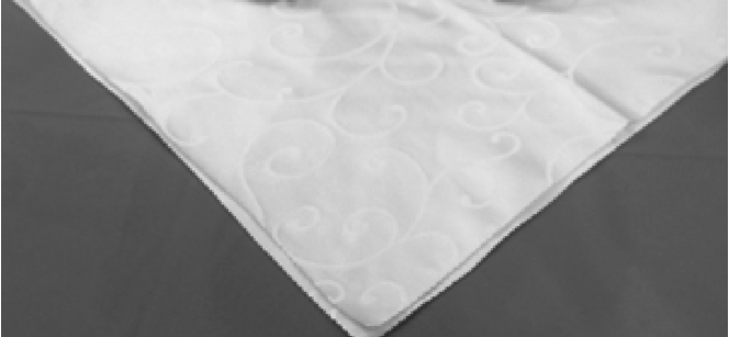 ①将餐巾一边向对边捏褶,成长方形。