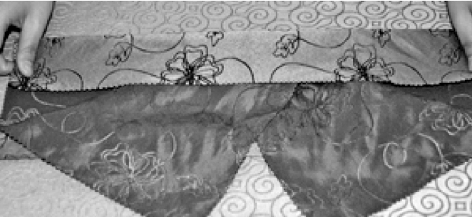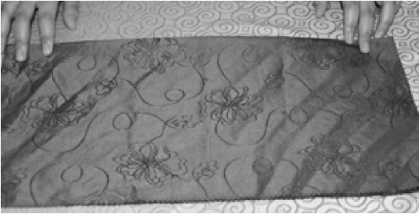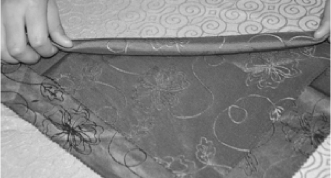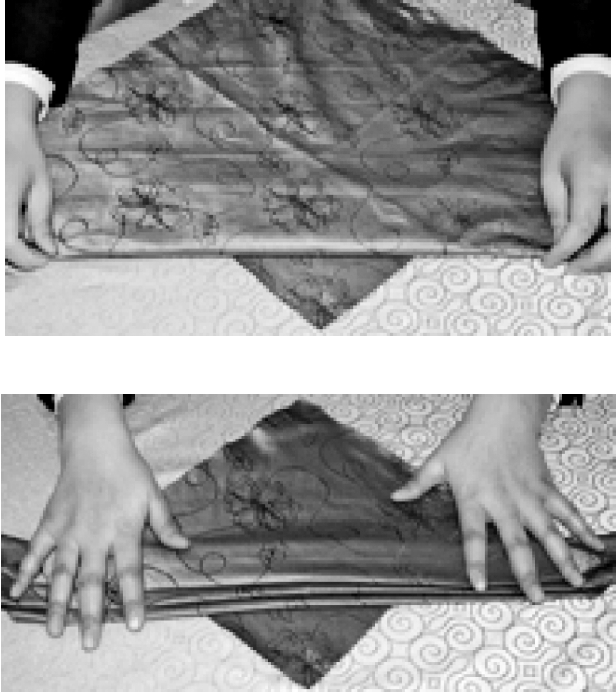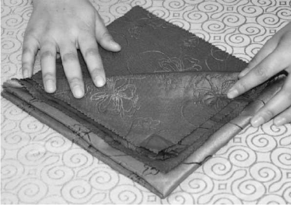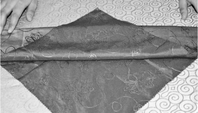 ②将上层的巾角沿平行于底边且距底边约为10cm的线翻折。