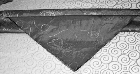 ②将两层餐巾中的上层的两个巾角向对边翻折。