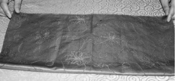 ③将另一层餐巾向对边折叠,形成宽约为8cm的小长方形。