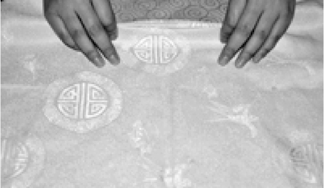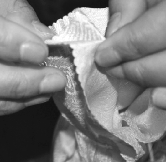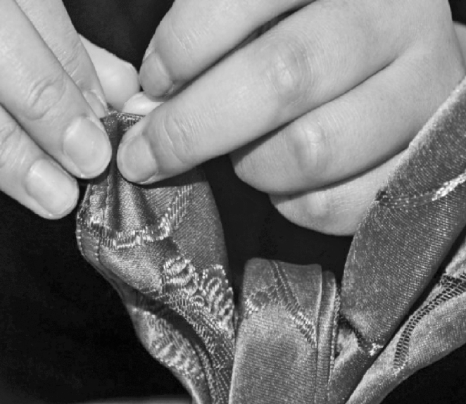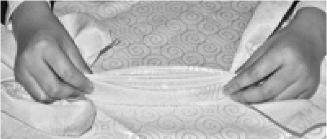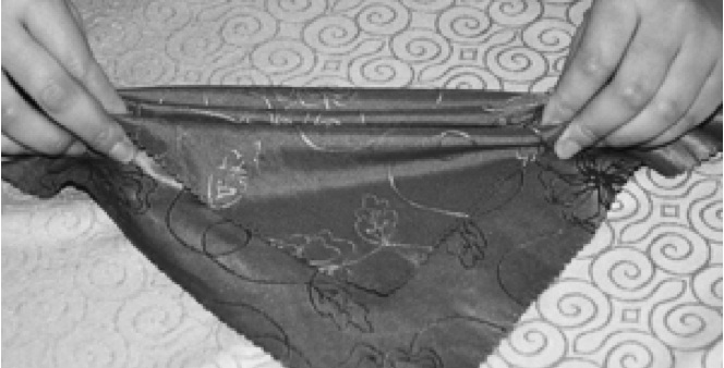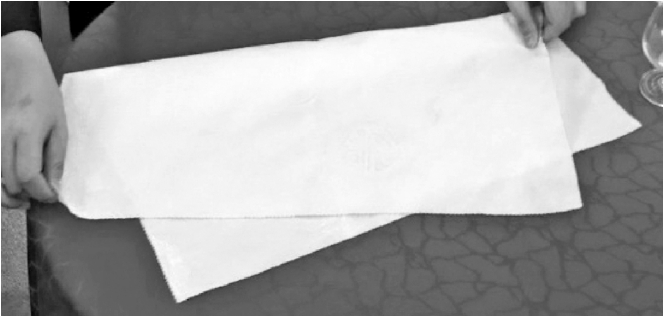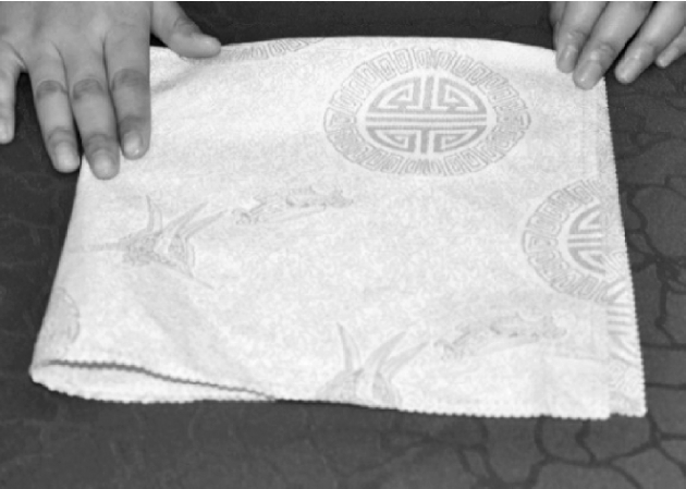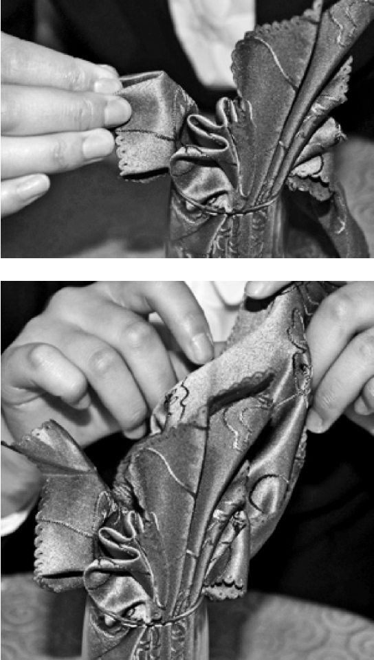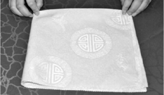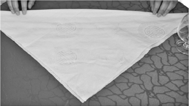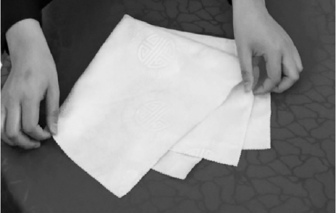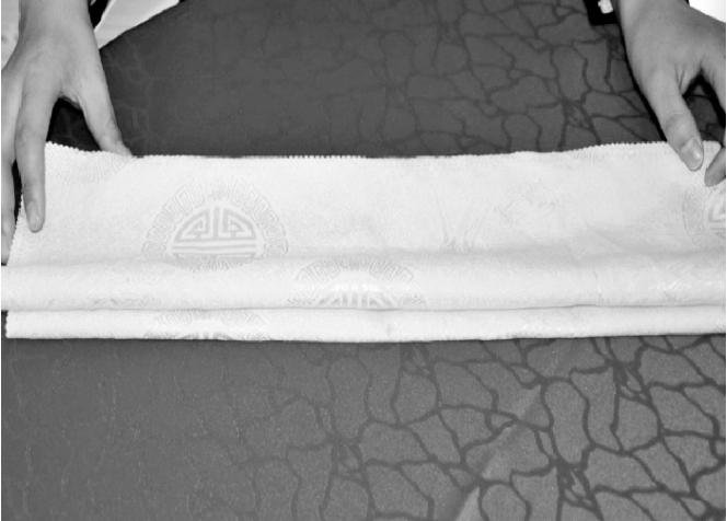 ②整理餐巾折裥,双手捏住距餐巾两端约为20cm处。