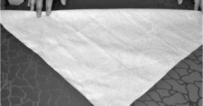 ⑤将餐巾沿垂直于卷筒方向的中线对折。