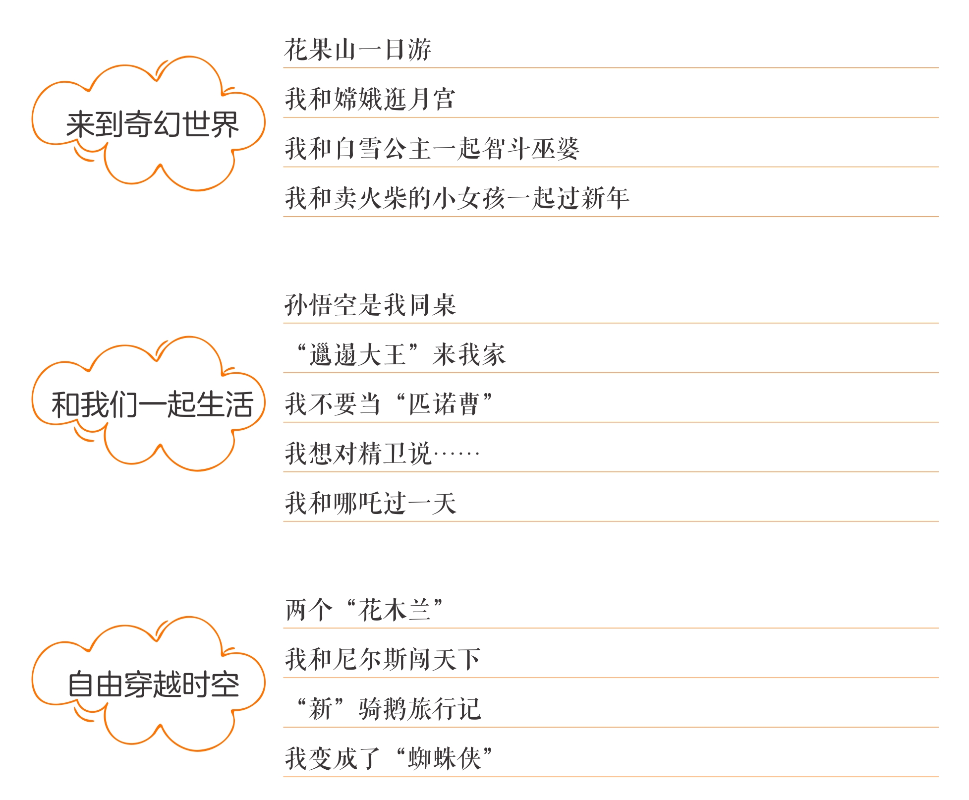 中外神话,常常会用神仙等具有超凡能力的人物形象来解释自然现象,因而留下神奇的故事、鲜明的人物形象。而童话也充满了奇妙的想象,表达了人们对美好生活的向往。如果让你和自己喜欢的神话或童话人物过一天,你会和谁在一起?会发生什么故事?注意