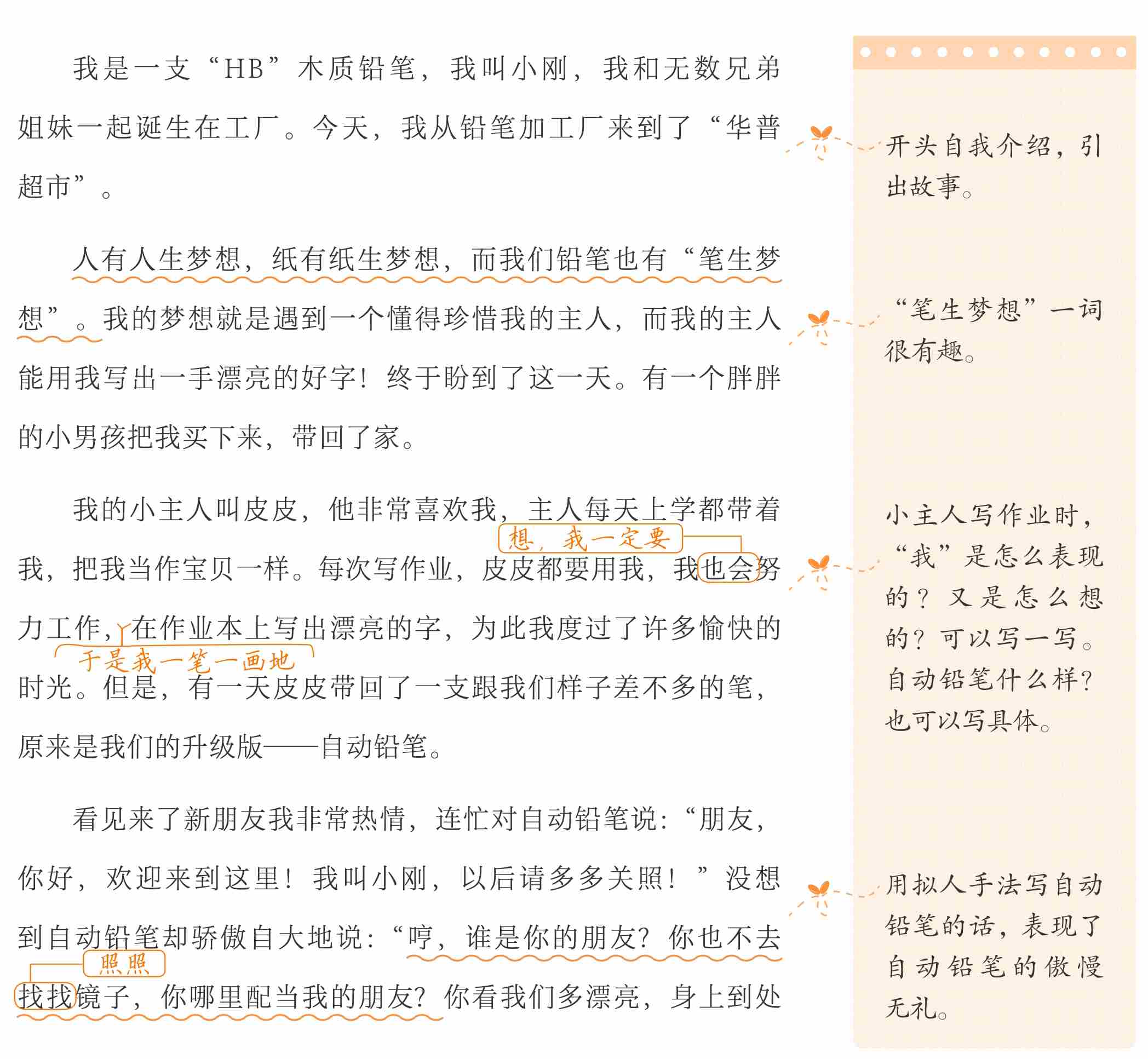 小作者利用“变身份”的法术,把自己变成了一支木制的铅笔,从而讲述了一个妙趣横生的小故事。当木制铅笔与自动铅笔相遇,必然会发生一些有趣的事情。而在这个故事中,“我”是谦虚有礼的,而自动铅笔却是那样傲慢无礼。这两个形象形成鲜明的对比,从而给我们留下深刻的印象。