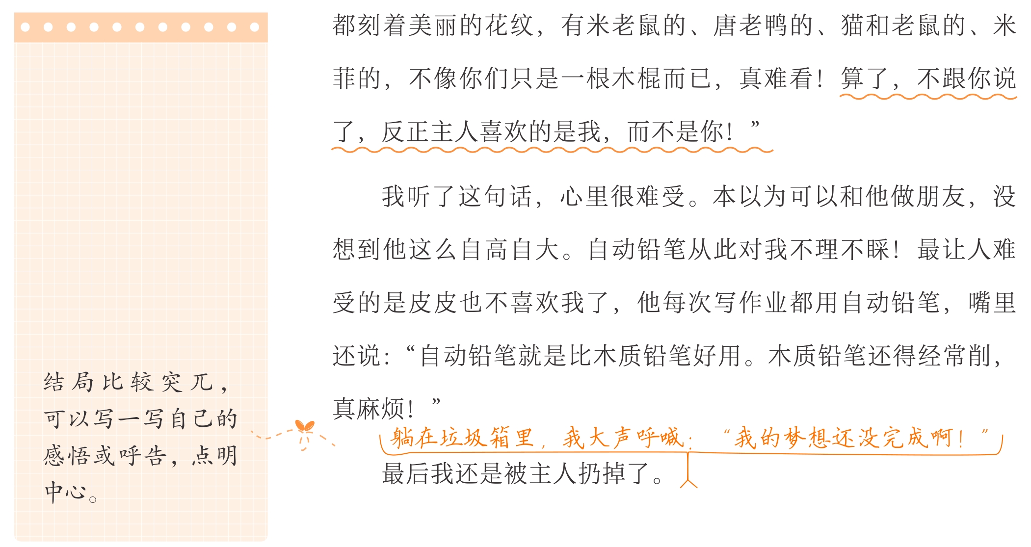 本次习作就是要力争通过故事给人启示,引人思考。