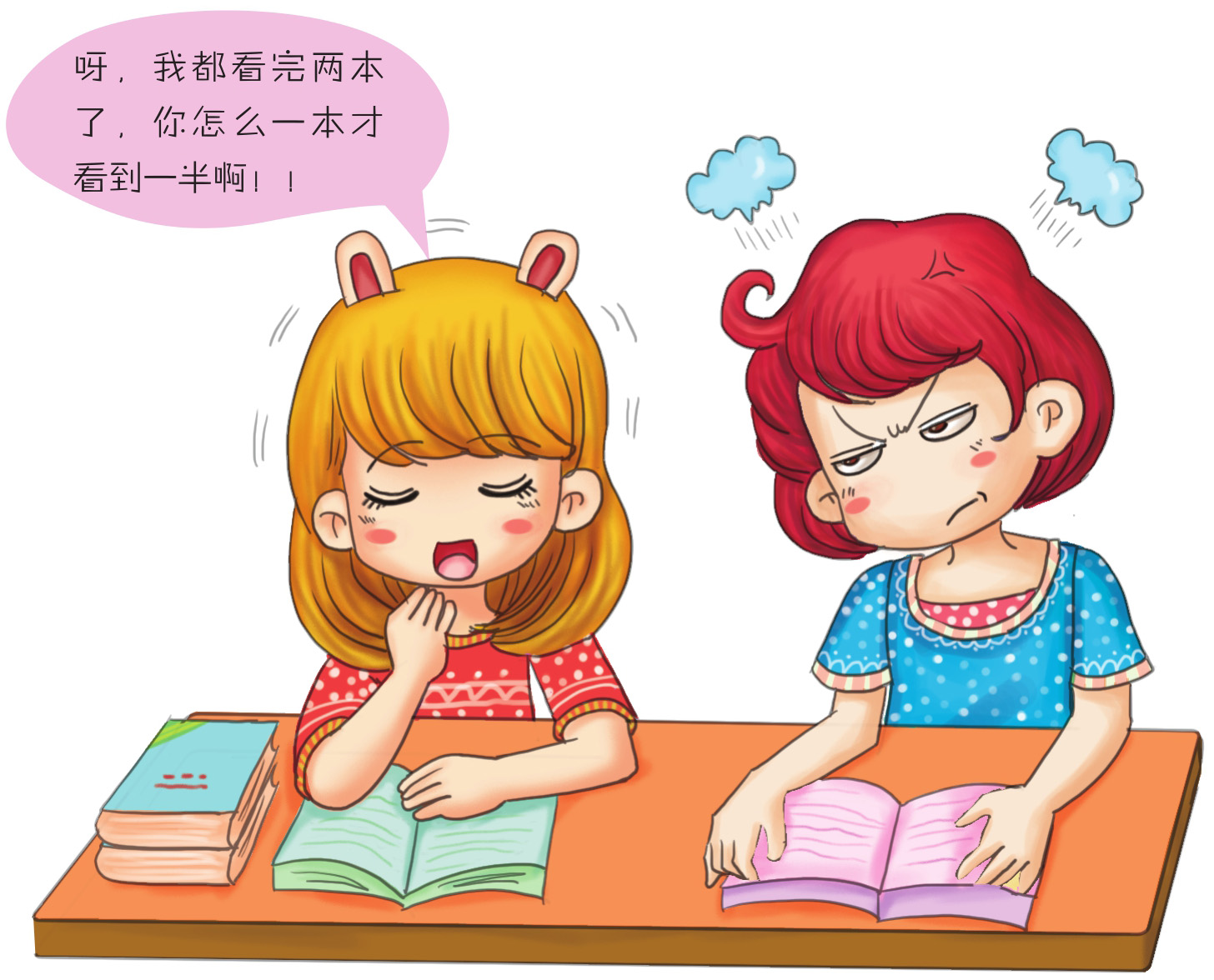 沈 思琪每次看课外书,安卉都要凑过来一起看。看着看着,安卉就忍不住抱怨:“思琪,你看书怎么比乌龟还慢?这一页我都看两遍了,你怎么还没看完呀?”