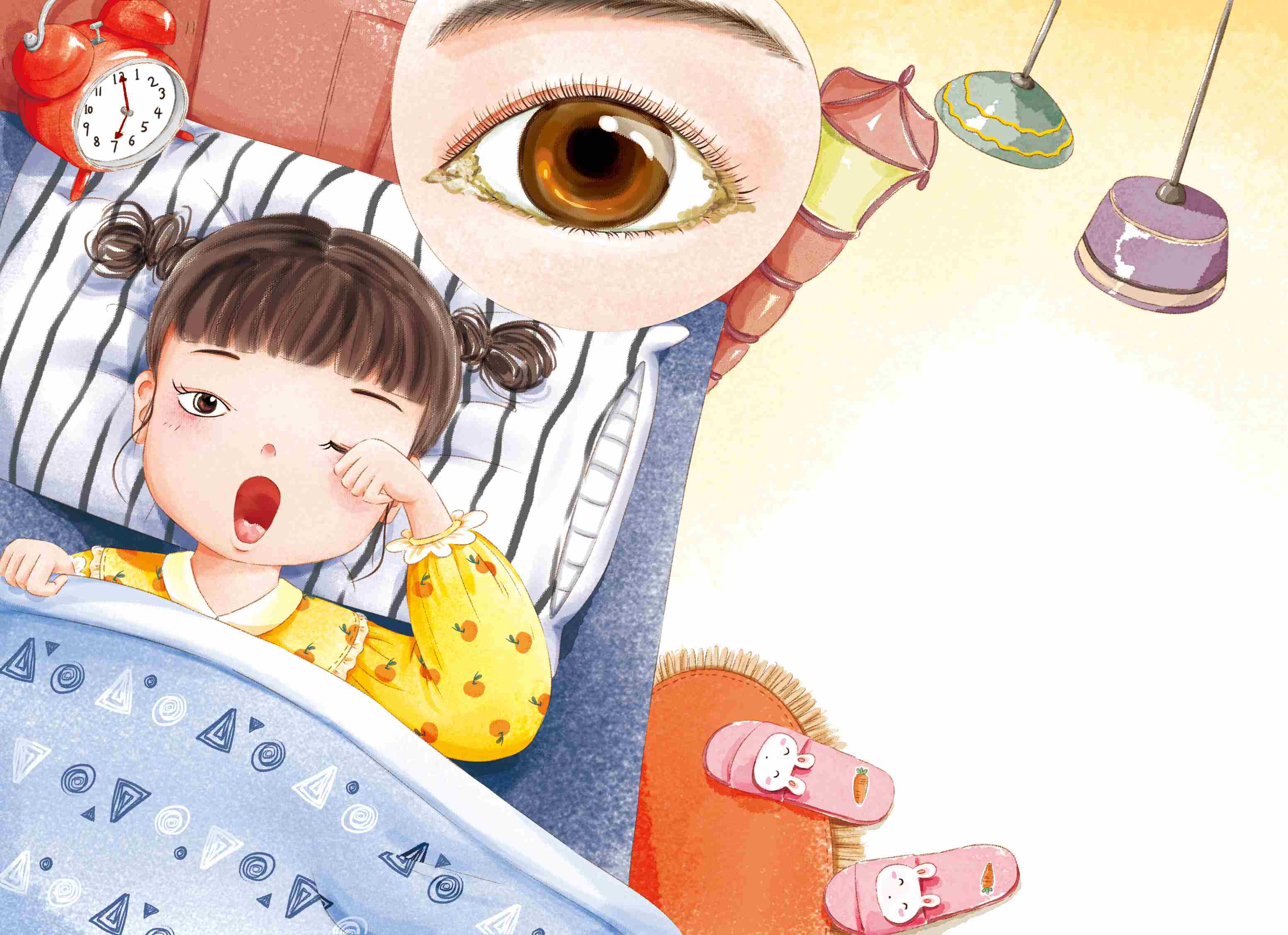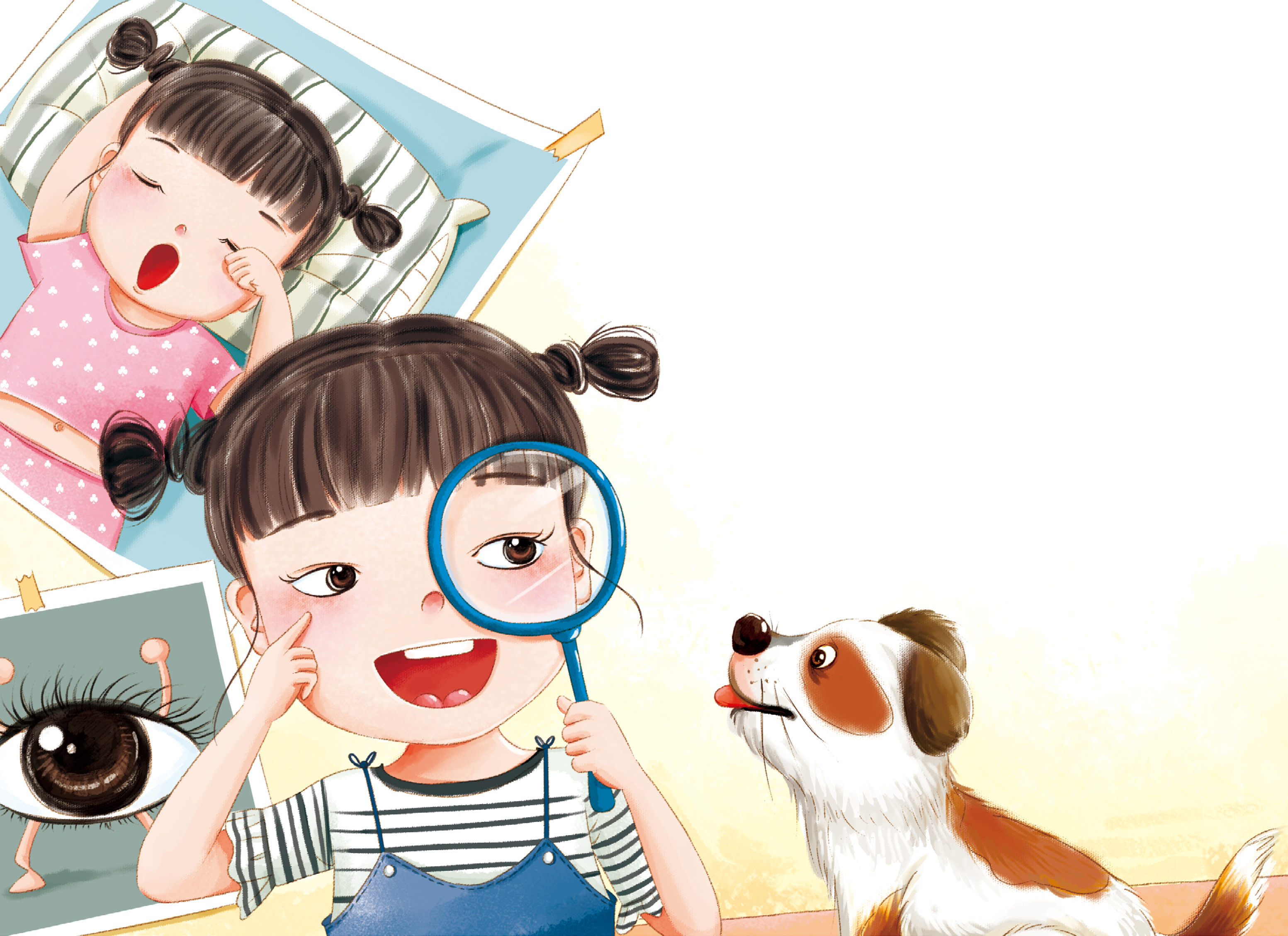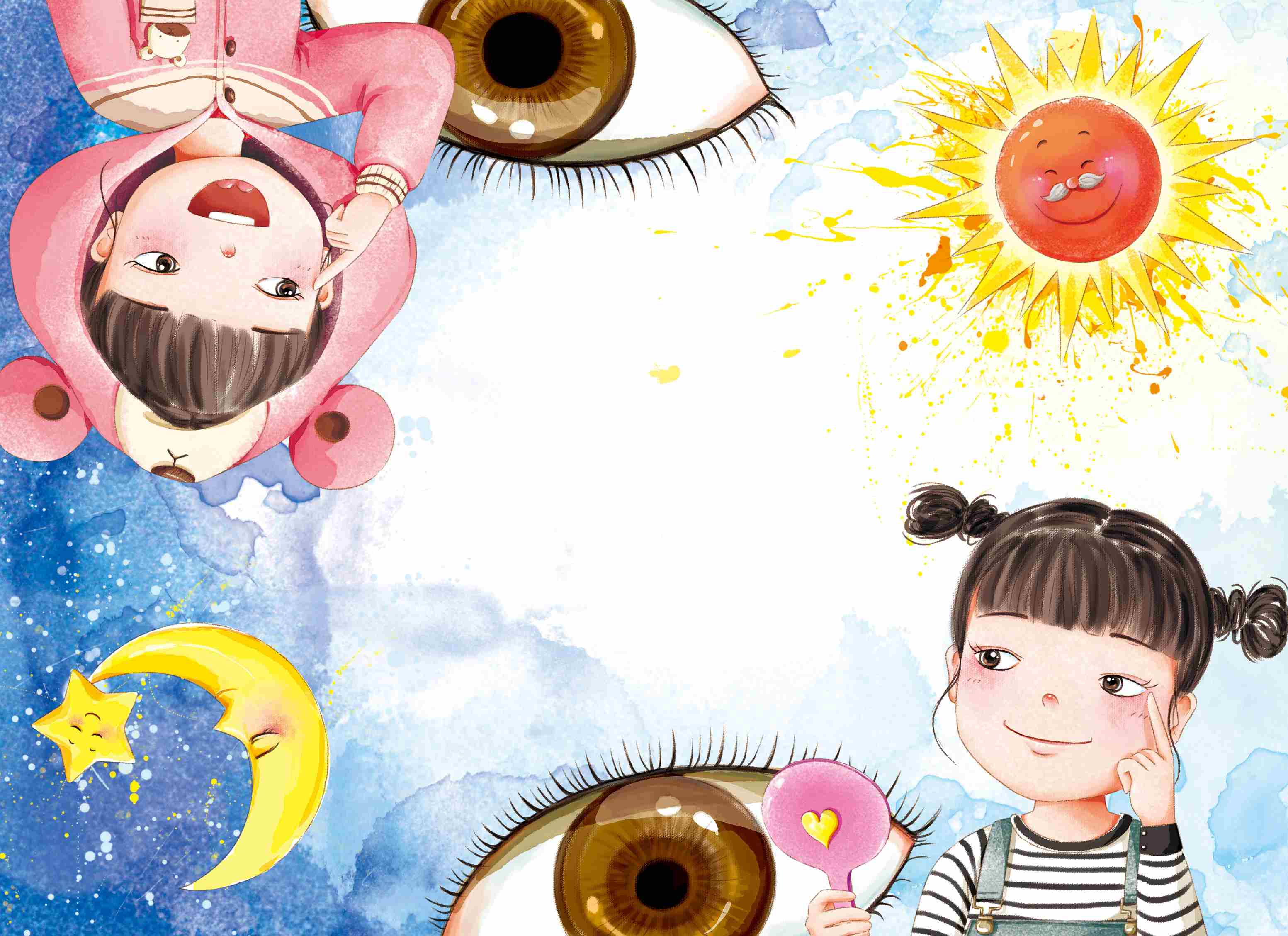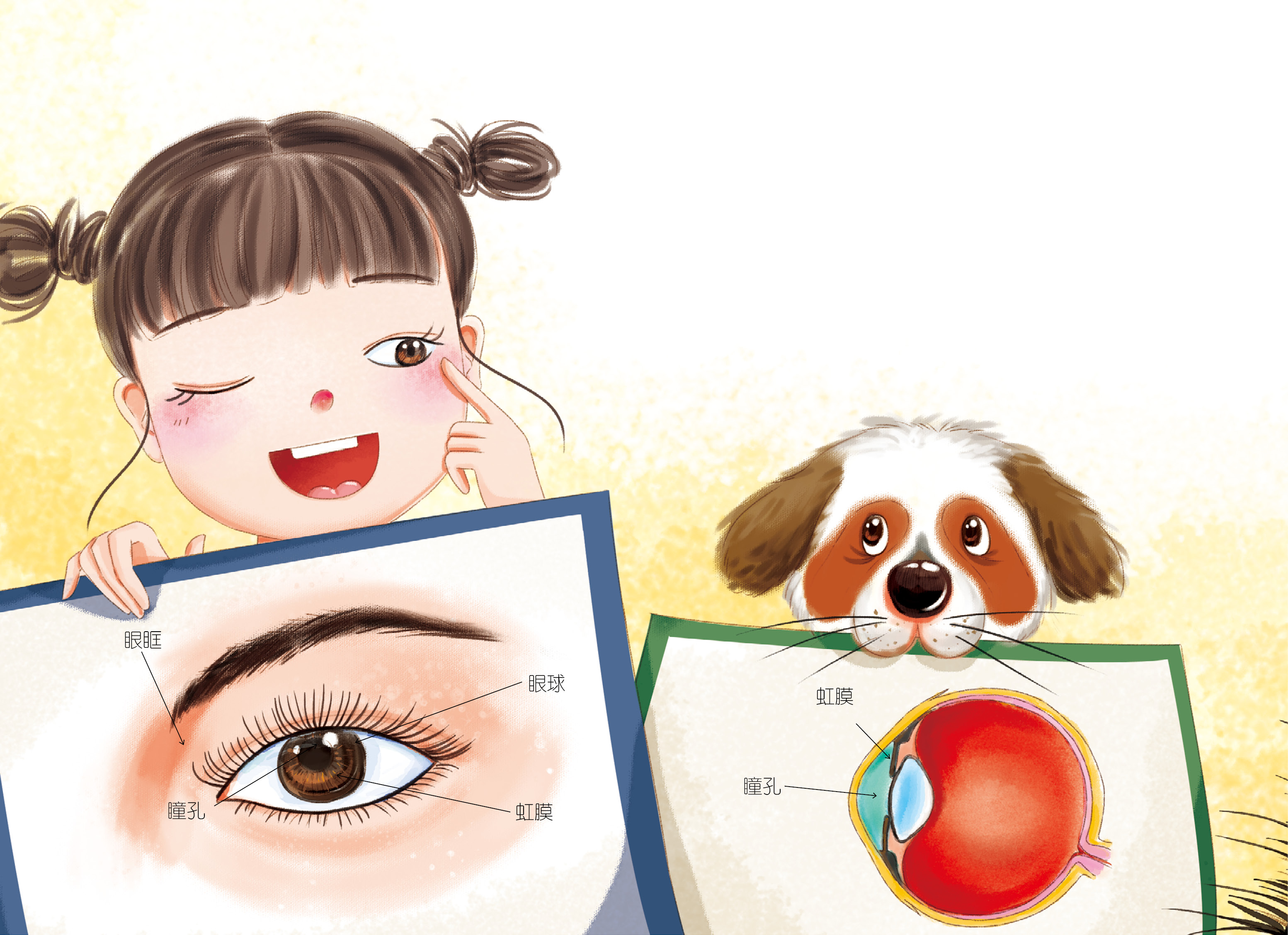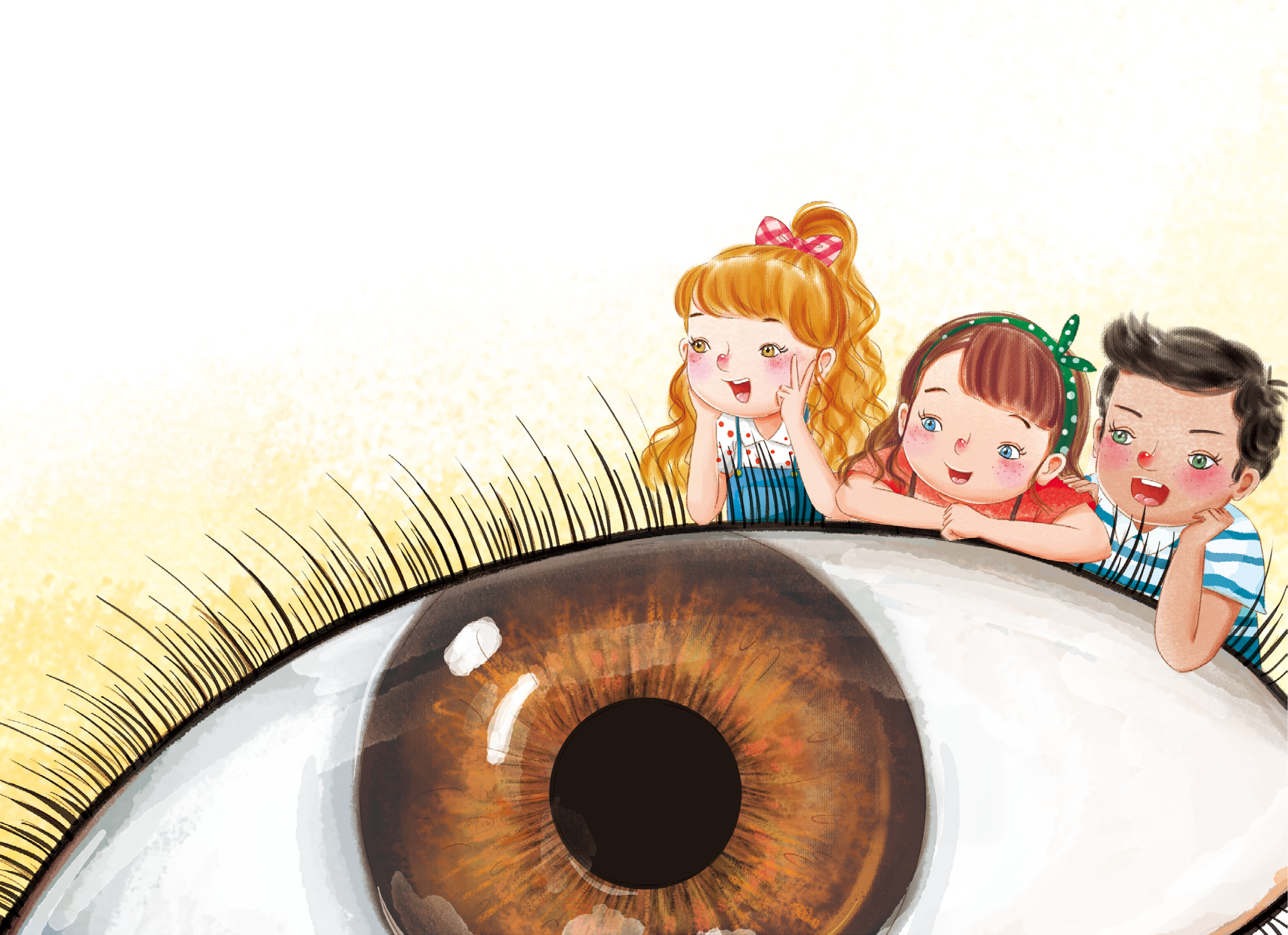嘘!眼睛宝宝起床啦。瞧,这个圆溜溜、亮晶晶的小家伙就是眼睛宝宝了,它住在我们脸