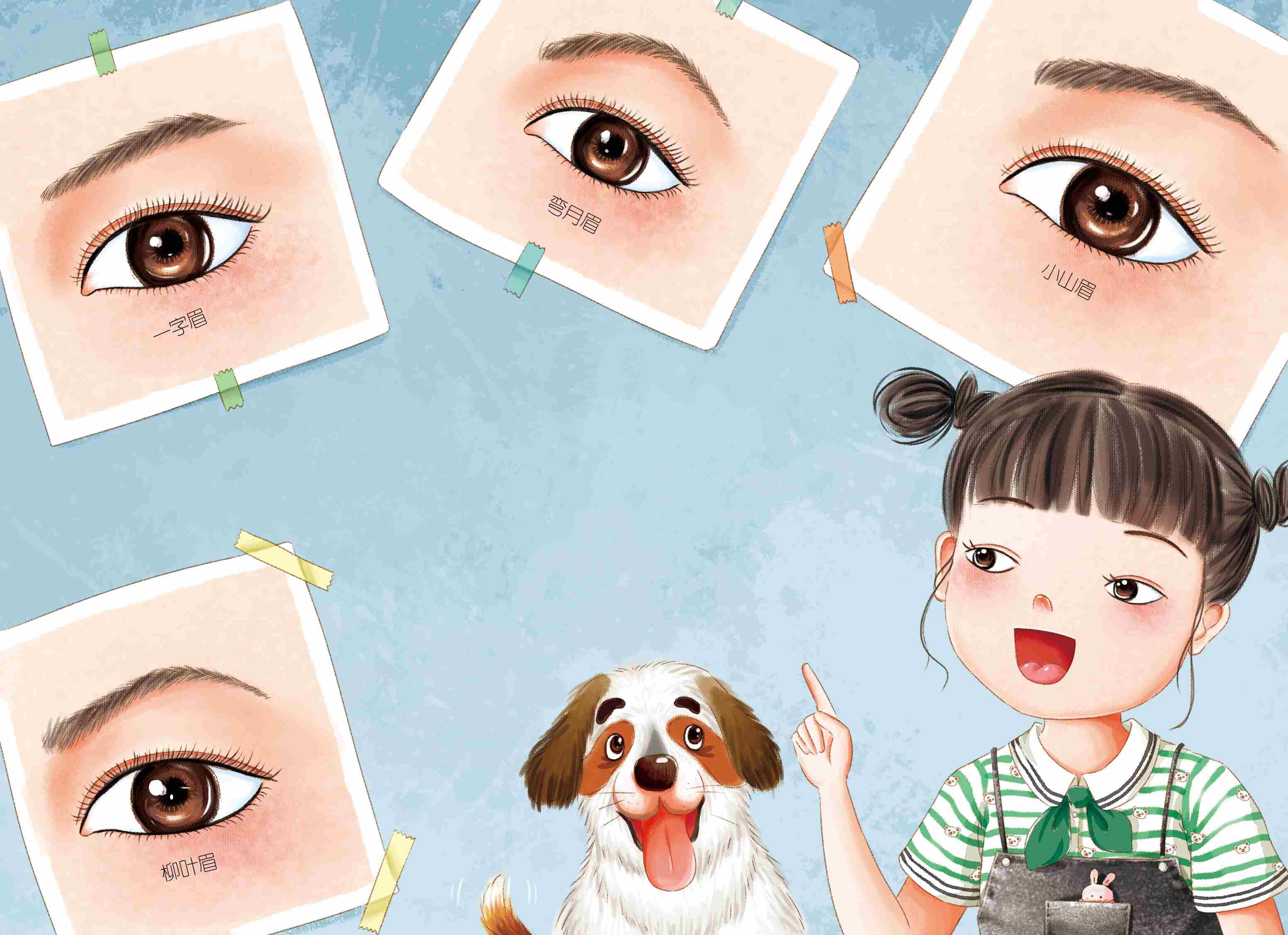 眉毛有粗有细,长短不同,有的长得像树叶,有的像个一字。眉毛就像一顶大檐帽,不同的眉形让眼睛宝宝的气质都不一样了。